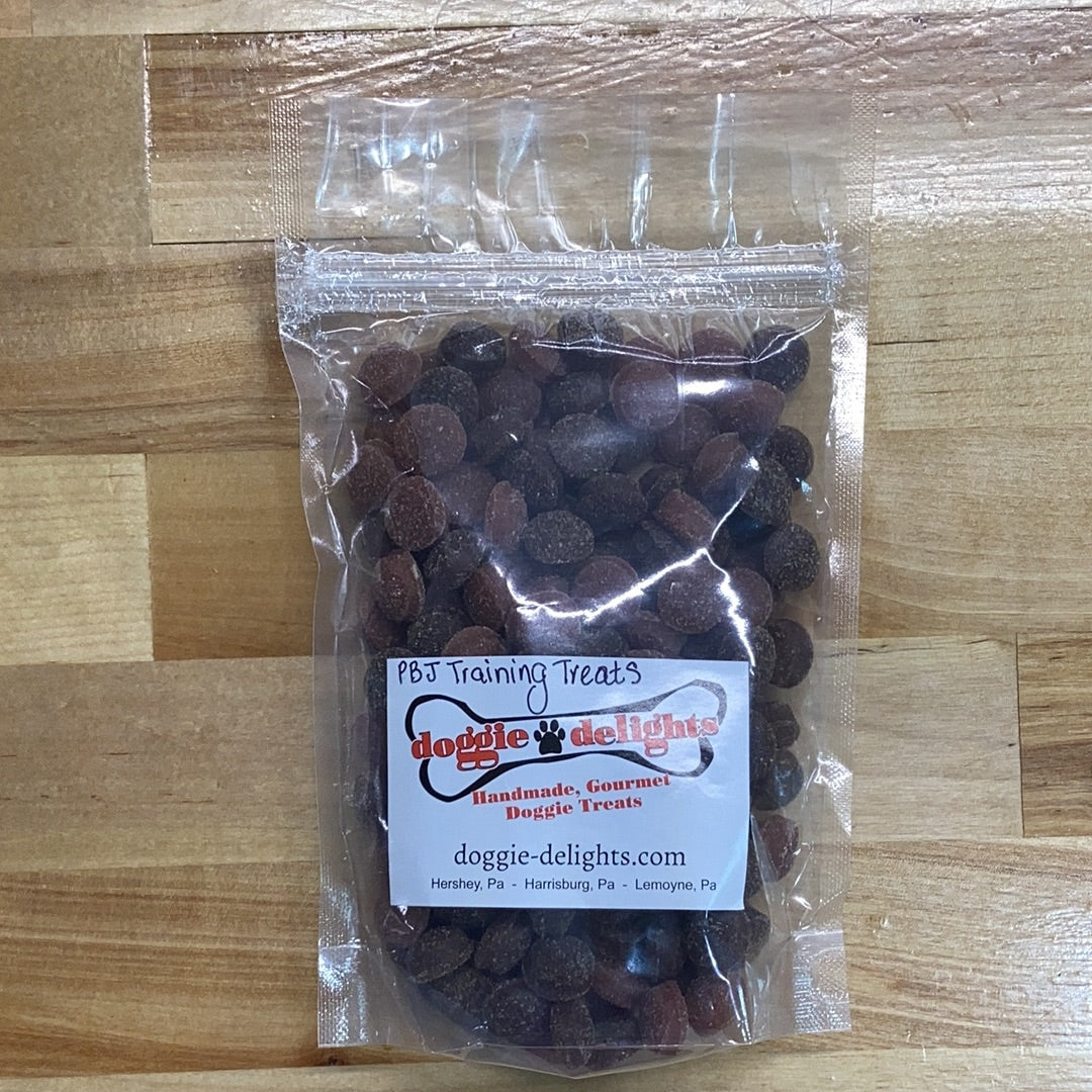 Tiny peanut butter and jelly flavored training treats. Great for small dogs.