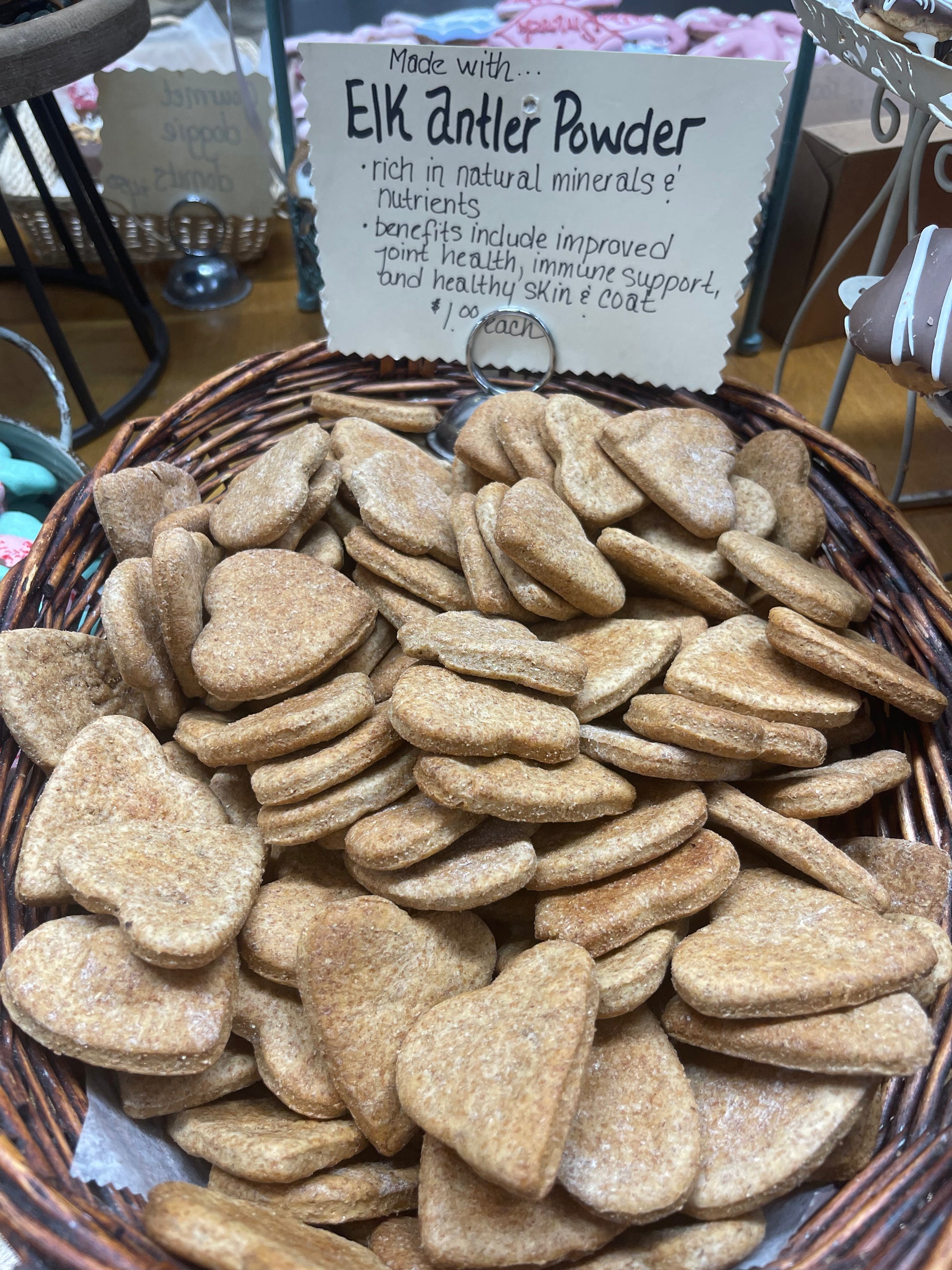 Antler Powder Hearts --- made with elk antler powder - pups really LOVE these cookies