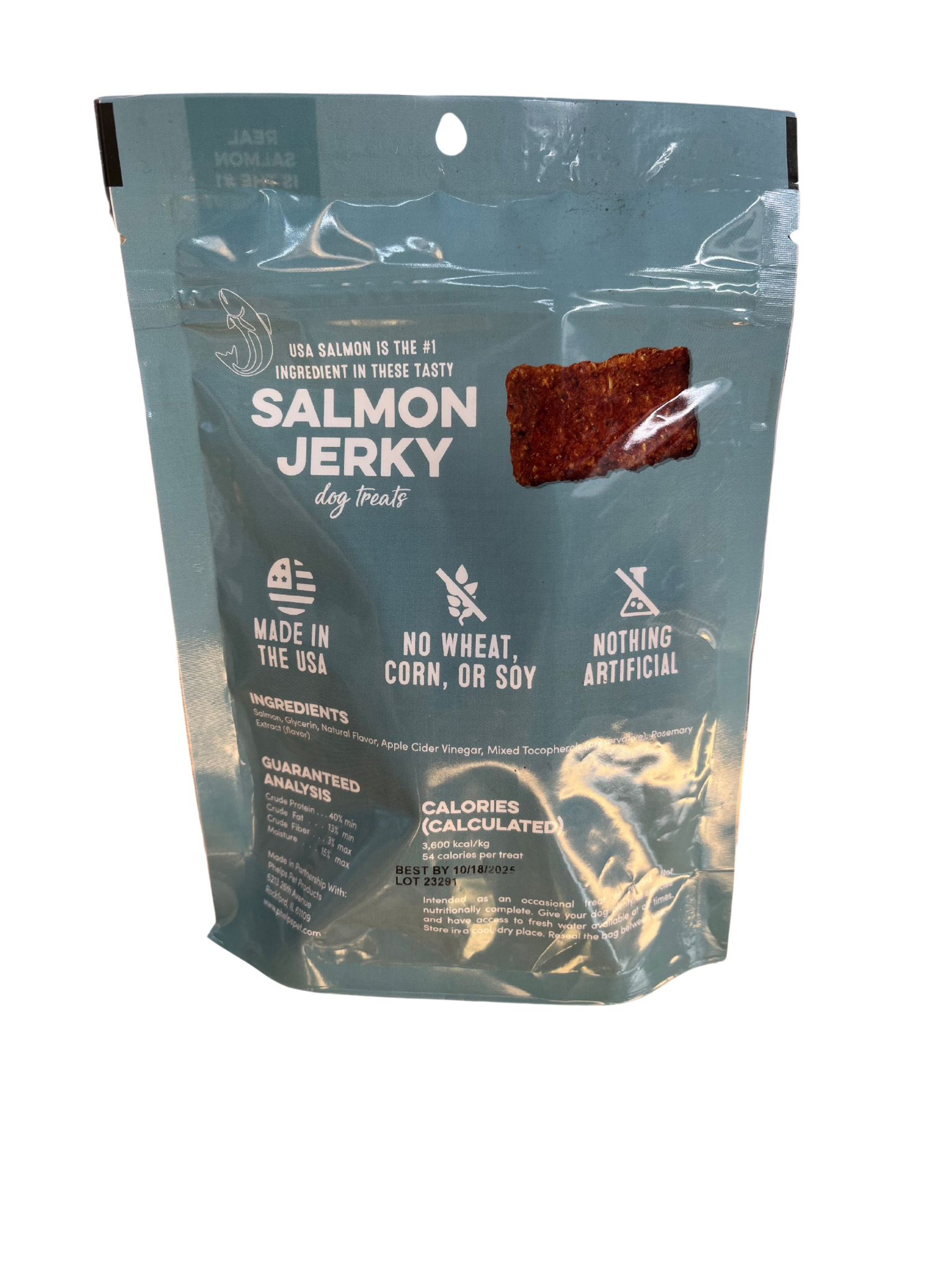 Salmon is the #1 ingredient in this delicious jerky. DOGS LOVE IT !