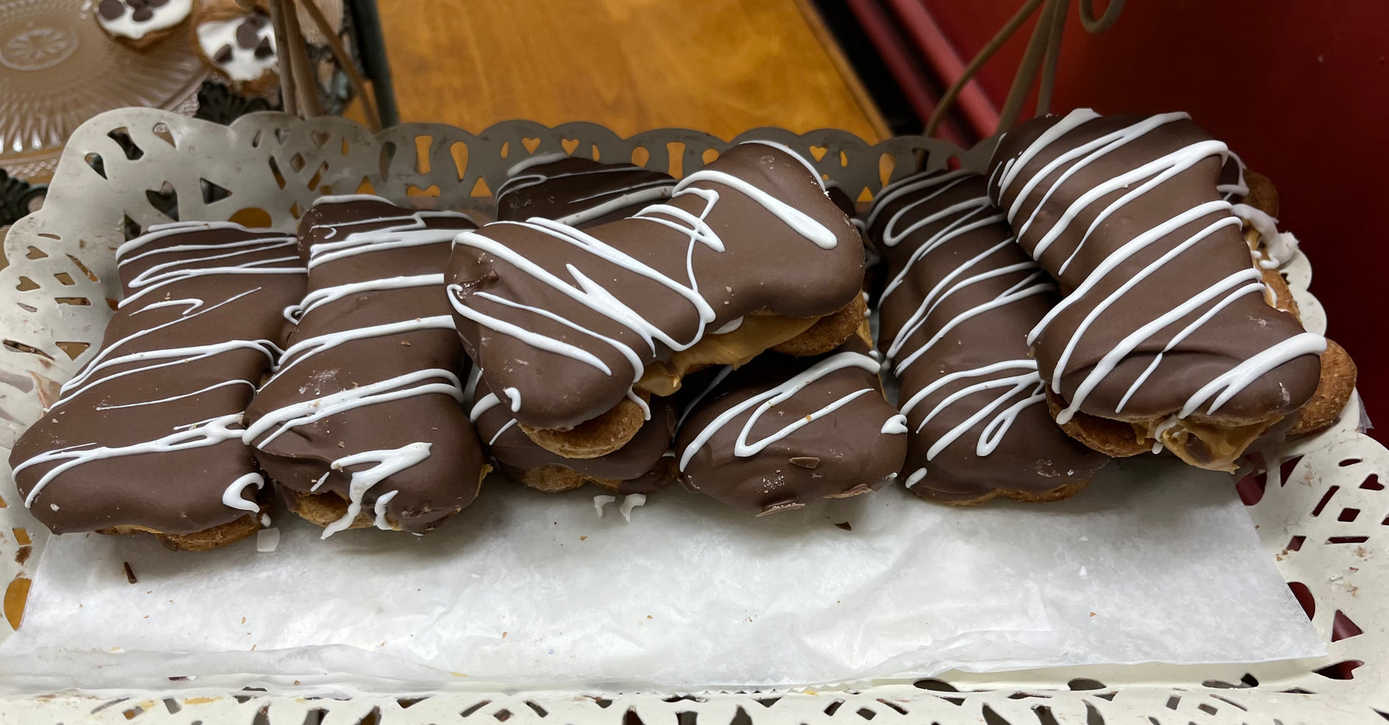 Our pb bin bones with melted yogurt and carob tipping and a peanut butter center.