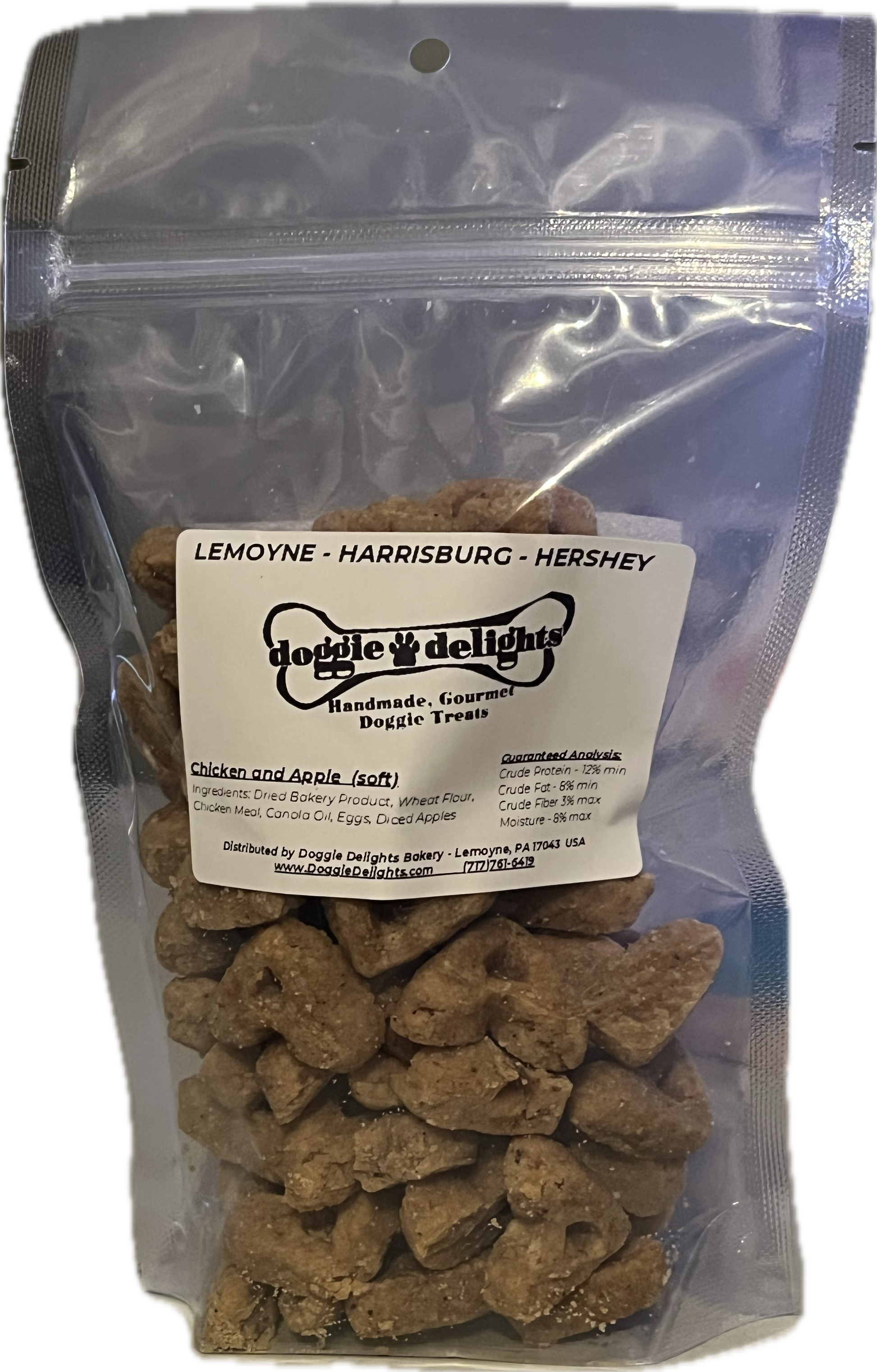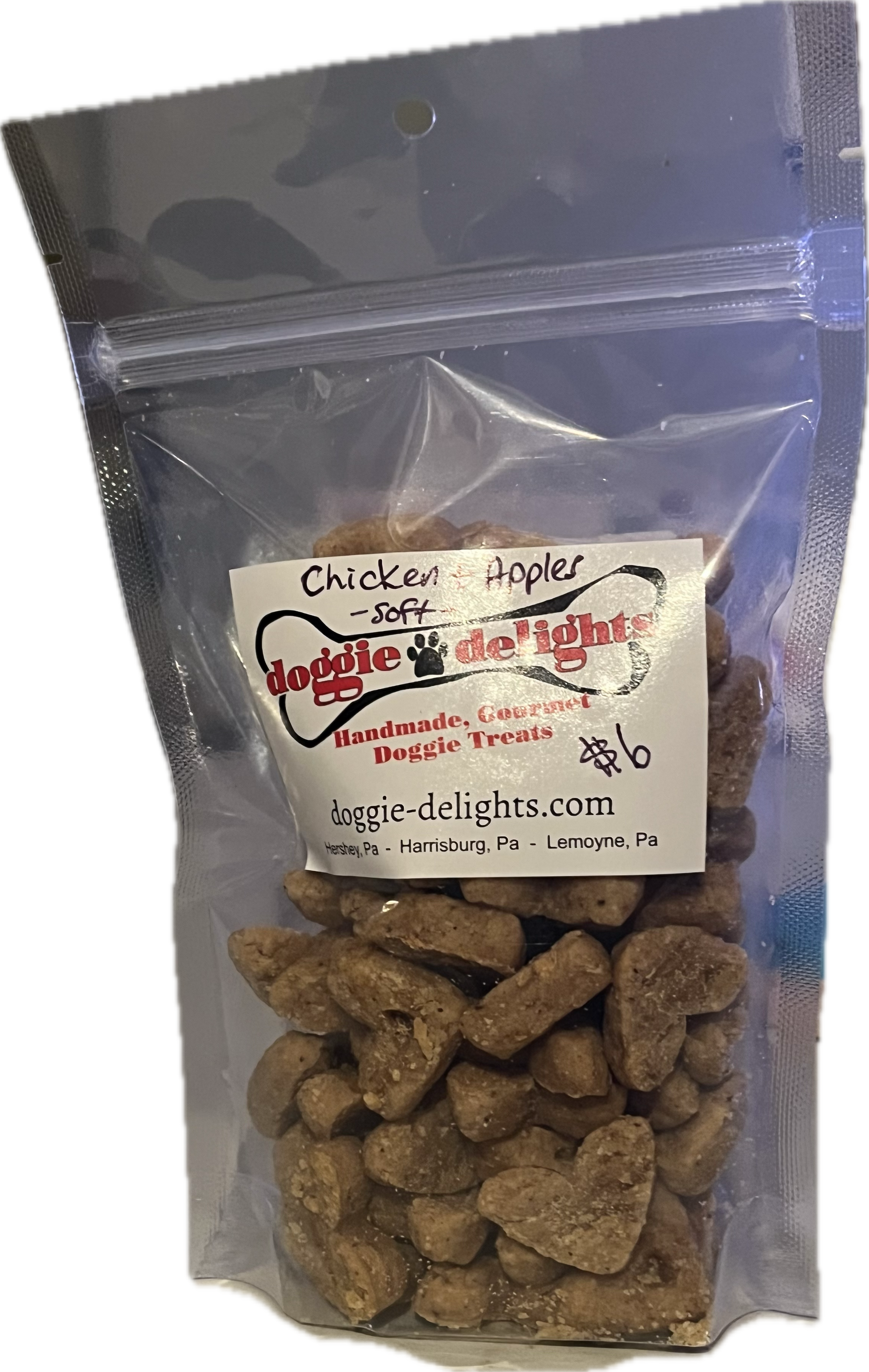 Pups are going CRAZY for these soft, delicious Chicken and diced Apple heart treats.